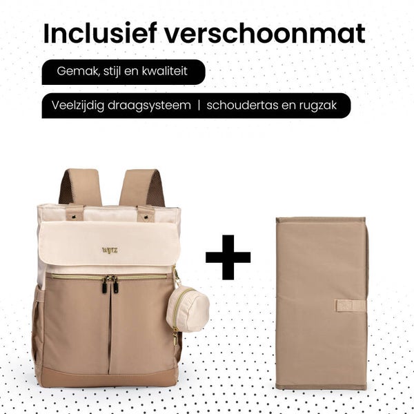 Uniek design: De Wijtz luiertas is een statement van stijl met zijn prachtige beige kleur en gouden details. Met 12 vakken is het de ideale luiertas om alles goed te kunnen opbergen. Aan de bovenzijde van de tas zit er een sleutelkoordje zodat je de sleutels altijd makkelijk terug kan vinden. Het unieke ontwerp maakt het niet alleen een praktisch accessoire, maar ook een modebewuste keuze voor elke ouder.